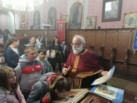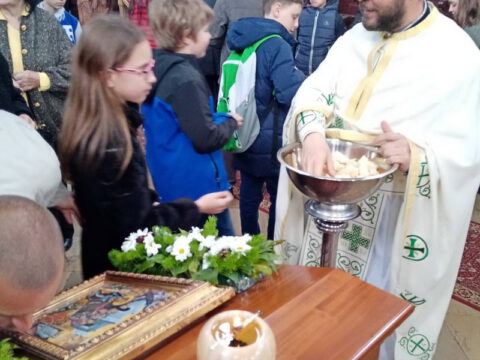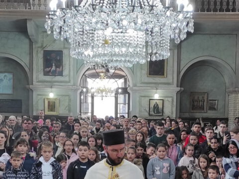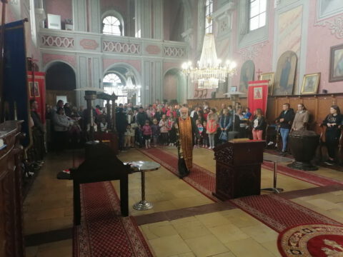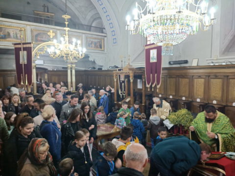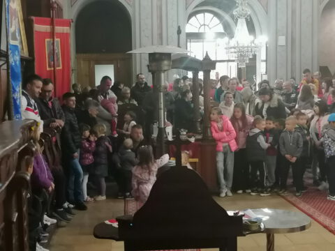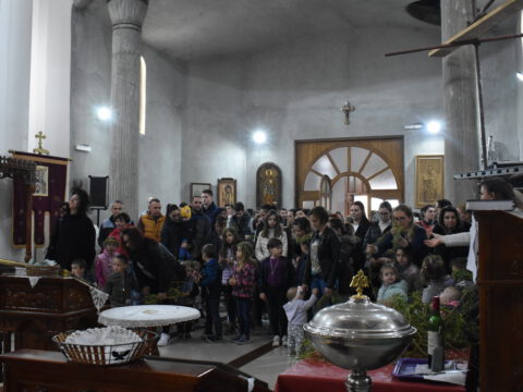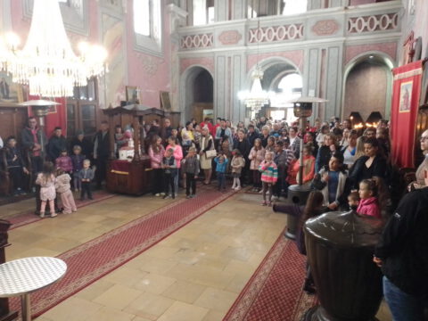 На празник Цвети, на светој Литургији, храм је био испуњен верним народом, нарочито децом.