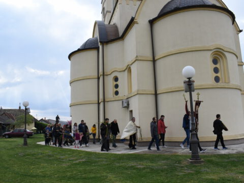 Госпођинци – У суботу, 3/16. априла 2022. године, на дан када прослављамо Васкрсење светог праведног Лазара – Врбицу, у храму Светог првомученика и архиђакона Стефана у Госпођинцима, вечерње богослужење служио је протопрезвитер-ставрофор Славко Пајовић, парох госпођиначки.