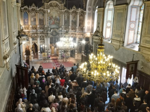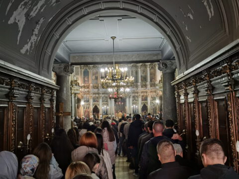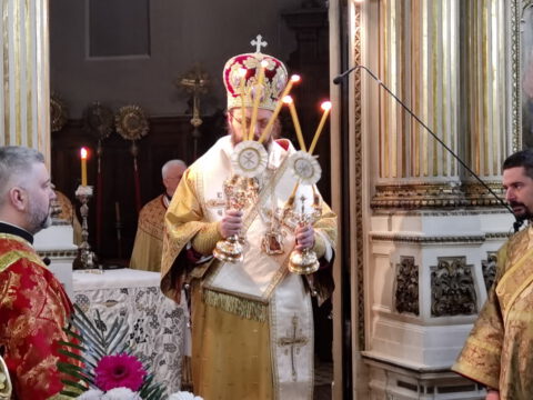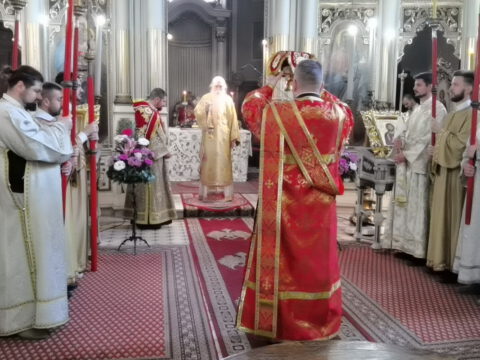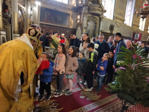 На празник Уласка Господа Исуса Христа у Јерусалим – Цвети, 4/17. априла 2022. године, на светој архијерејској Литургији у Саборном храму у Новом Саду началствовао је Његово Преосвештенство Епископ бачки господин др Иринеј. Преосвећеном епископу Иринеју саслуживали су Његово Преосвештенство Епископ мохачки господин Дамаскин, свештеници Саборног храма и новосадски ђакони.