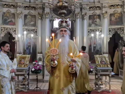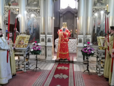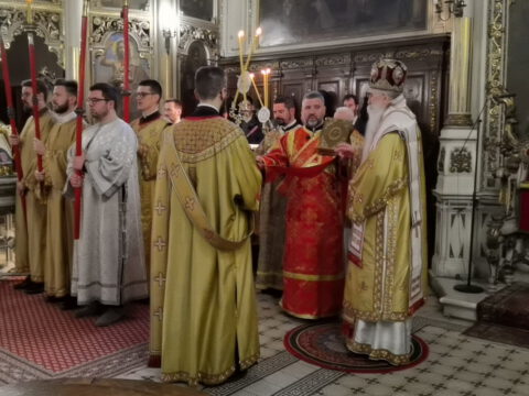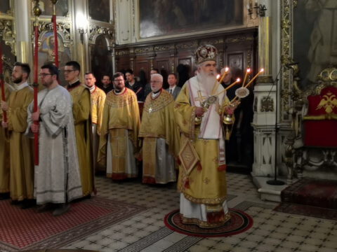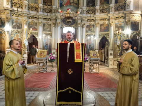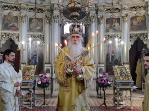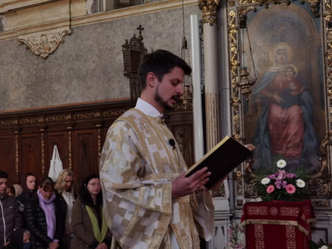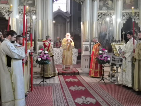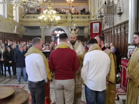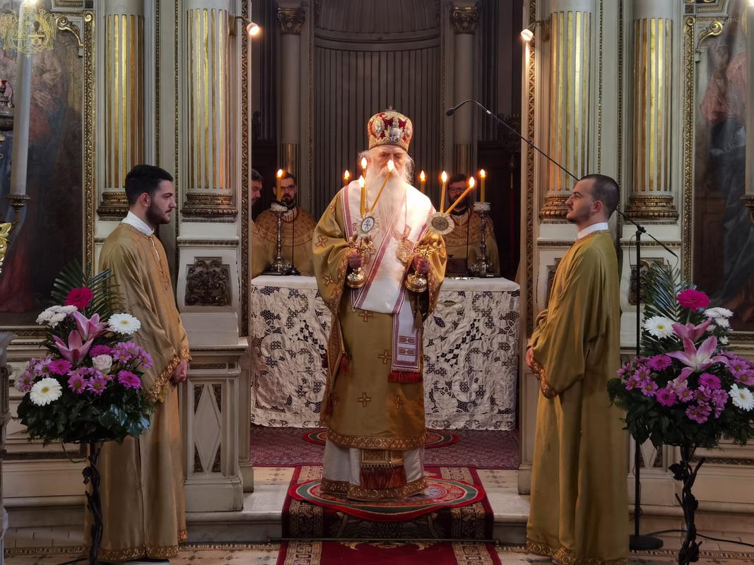 На празник Уласка Господа Исуса Христа у Јерусалим – Цвети, 4/17. априла 2022. године, на светој архијерејској Литургији у Саборном храму у Новом Саду началствовао је Његово Преосвештенство Епископ бачки господин др Иринеј. Преосвећеном епископу Иринеју саслуживали су Његово Преосвештенство Епископ мохачки господин Дамаскин, свештеници Саборног храма и новосадски ђакони.