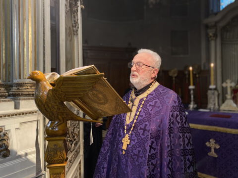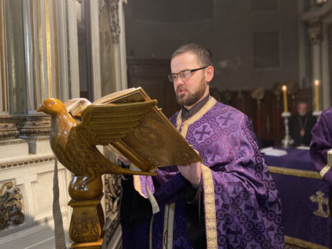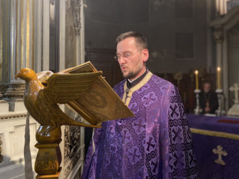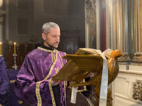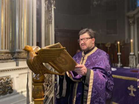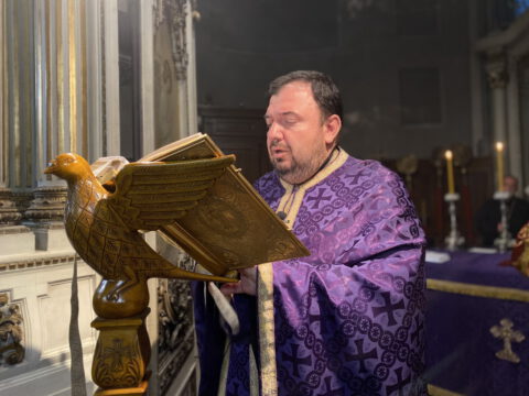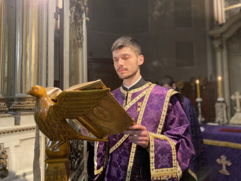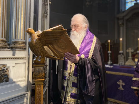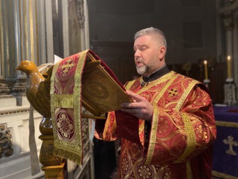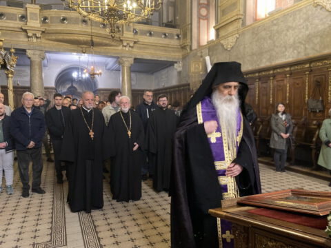 На Велики четвртак, 8/21. априла 2022. године, у Саборном храму Светог великомученика Георгија у Новом Саду, служено је Велико бденије, током којег је прочитано дванаест одељака из светог Јеванђеља о страдањима Господа Исуса Христа.