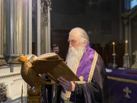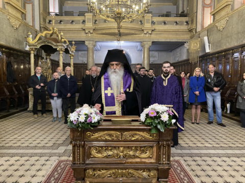 На Велики четвртак, 8/21. априла 2022. године, у Саборном храму Светог великомученика Георгија у Новом Саду, служено је Велико бденије, током којег је прочитано дванаест одељака из светог Јеванђеља о страдањима Господа Исуса Христа.