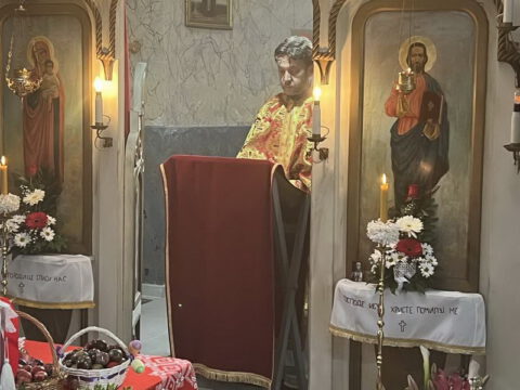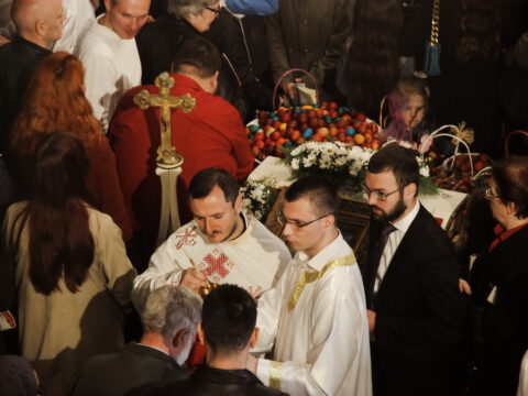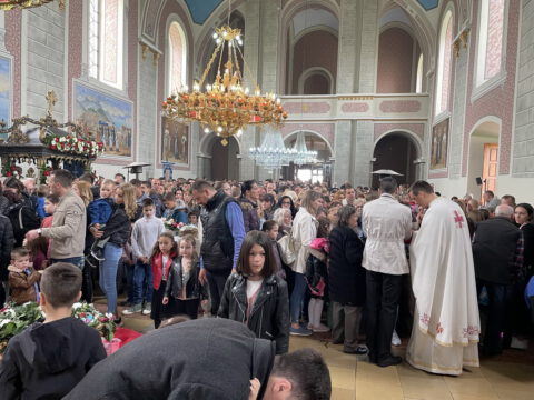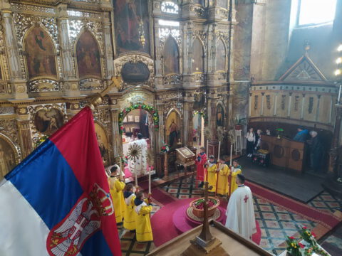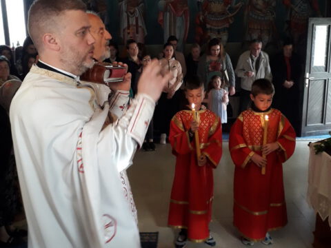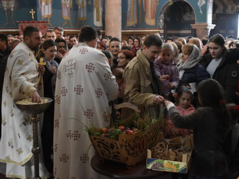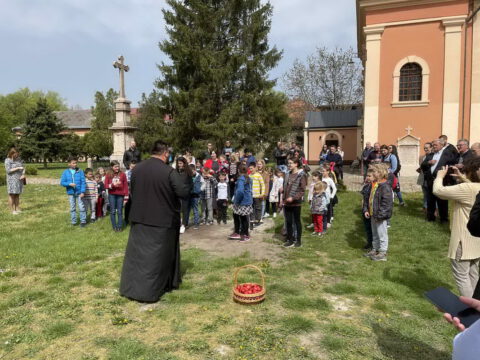 Црвенка – У Црвенки је свечано прослављено Васкрсење Господа Исуса Христа, у недељу, 11/24. априла 2022. године. У Светосавском храму у Црвенки свету Литургију служио је презвитер Милош Петровић. После свете Литургије, презвитер Милош Петровић је освештао васкршња јаја која су потом подељена верном народу.