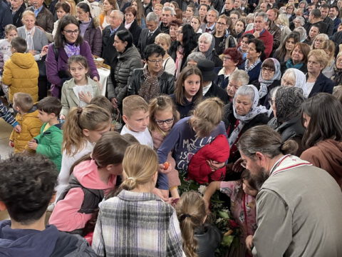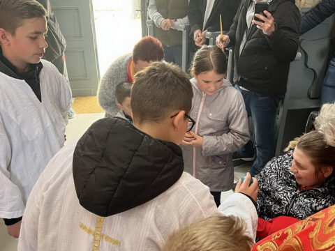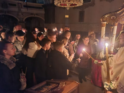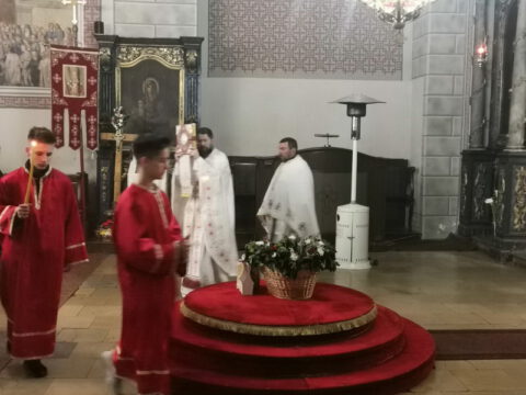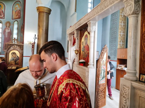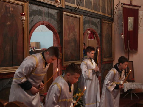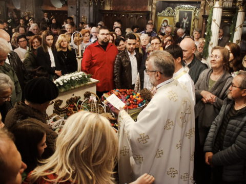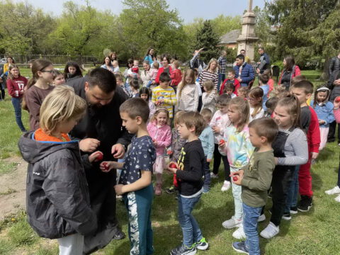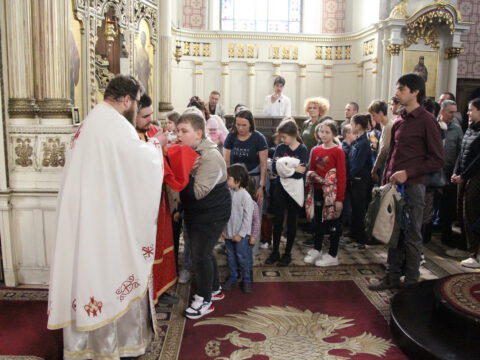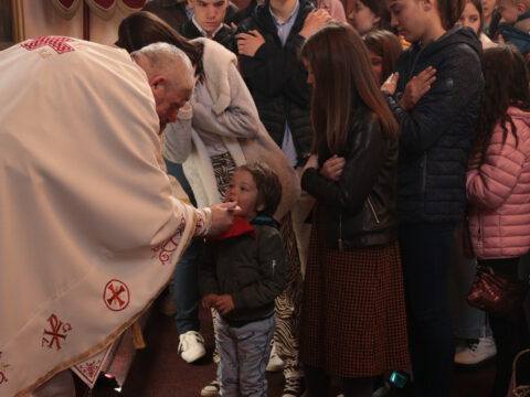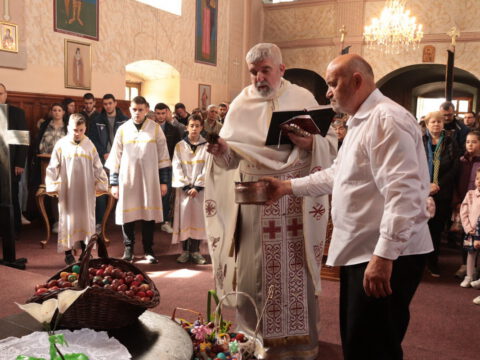 Хоргош – Празник над празницима, Васкрсење Христово, молитвено и радосно је прослављен у Хоргошу, у недељу, 11/24. априла 2022. године, у храму Преображења Господњег. Свету Литургију служио је презвитер Бошко Симић, парох хоргошки. Већина присутних верника и деце приступили су светом Причешћу.