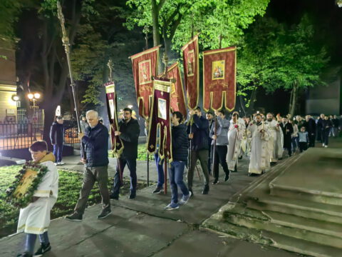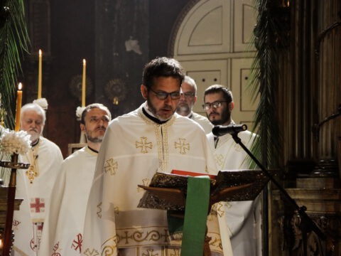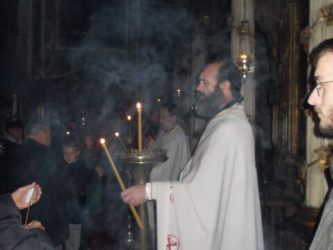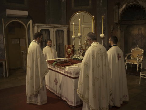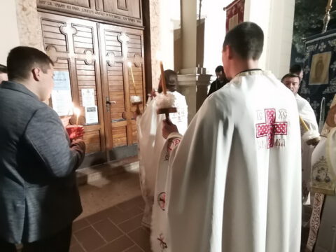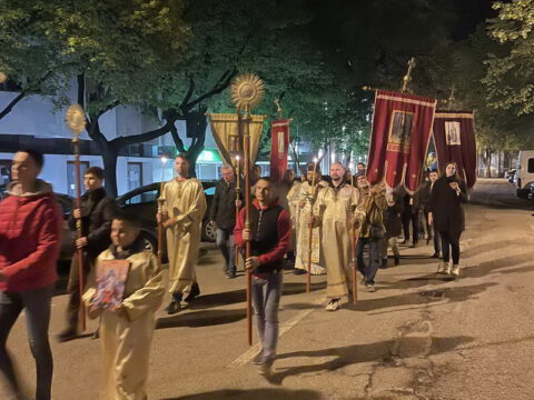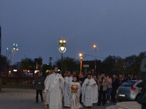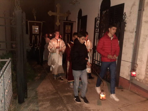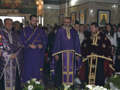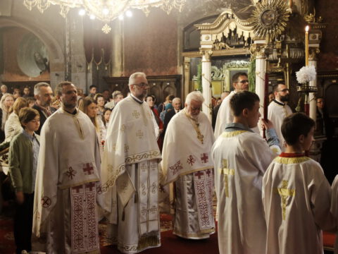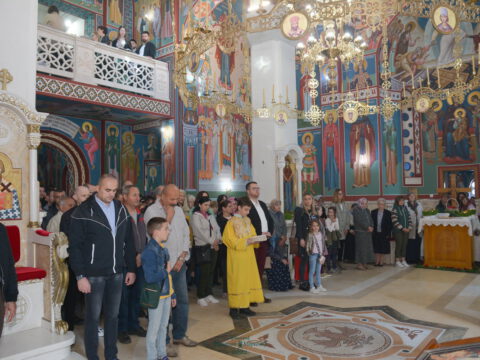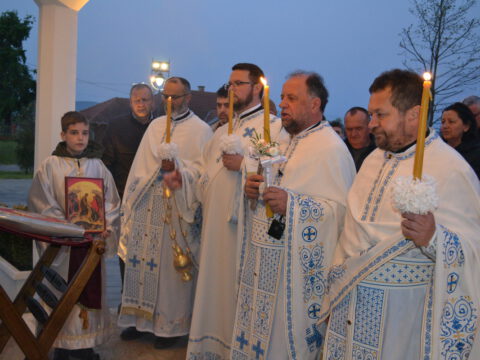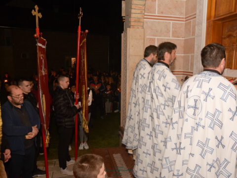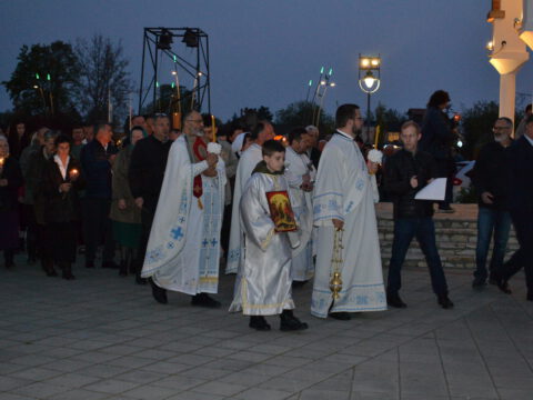 Сомбор – Сабрани поводом највећег хришћанског Празника, житељи Сомбора евхаристијски су прославили Васкрсење Господа нашега Исуса Христа. Протонамесник Саво Николић, архијерејски намесник сомборски, служио је пасхално јутрење у храму Светог великомученика Георгија.
