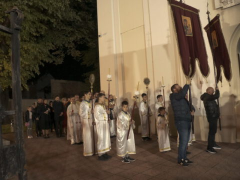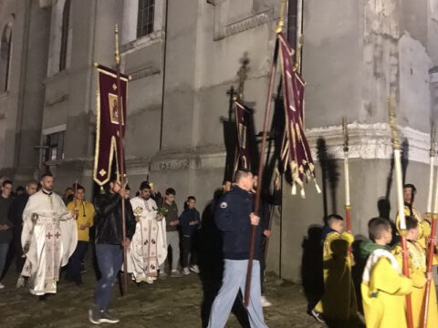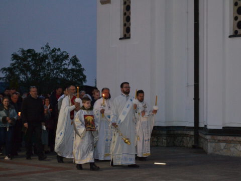 Бечеј – Mолитвена прослава Васкрсења Христовог у Светогеоргијевском храму у Бечеју почела је 11/24. априла 2022. године, у поноћ, служењем пасхалног јутрења, а настављена је служењем свете Литургије, на којој је началствовао старешина храма, протојереј Владислав Пајић, архијерејски намесник бечејски, уз саслуживање свештеног братства храма. На јутрењу са свечаном литијом око храма и светој Литургији учествовало је мноштво верног народа и деце.