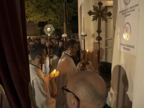 Бачка Паланка – Прослава Празника над празницима, Васкрсења Христовог, у бачкопаланачким храмовима Рођења Светога Јована Крститеља и Покрова Пресвете Богородице, почела је свечаним пасхалним јутрењем у поноћ, а настављена светом Литургијом у јутарњим часовима.