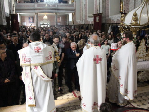 Евхаристијским сабрањем началствовао је протојереј Александар Брашанац, настојатељ Светониколајевског храма, уз саслужење презвитера Владимира Маркова. После прочитаног јеванђелског зачала прочитана је Васкршња посланица Архиепископа пећког, Митрополита београдско-карловачког и Патријарха српског господина Порфирија и свих архијереја Српске Православне Цркве, упућена свештенству, монаштву и свима синовима и кћерима наше свете Цркве.
