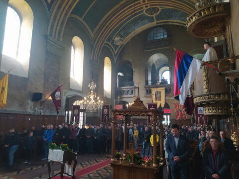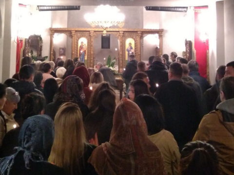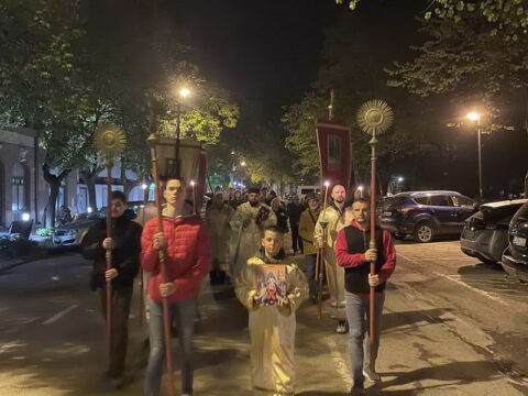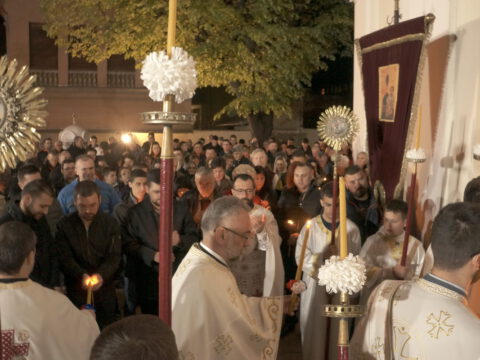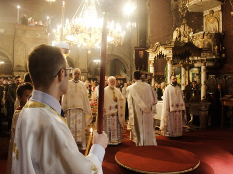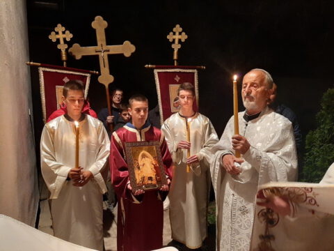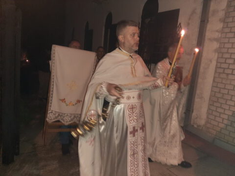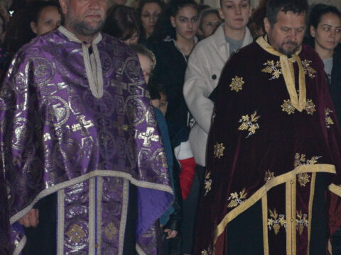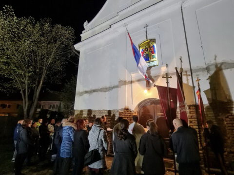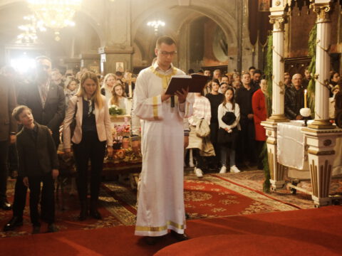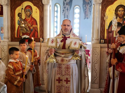 Сомбор – Сабрани поводом највећег хришћанског Празника, житељи Сомбора евхаристијски су прославили Васкрсење Господа нашега Исуса Христа. Протонамесник Саво Николић, архијерејски намесник сомборски, служио је пасхално јутрење у храму Светог великомученика Георгија.