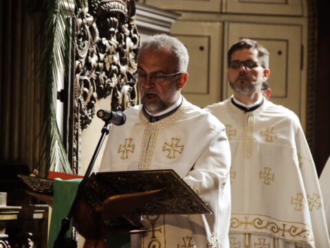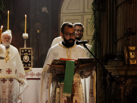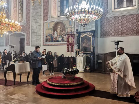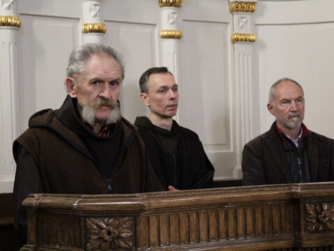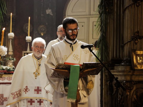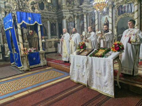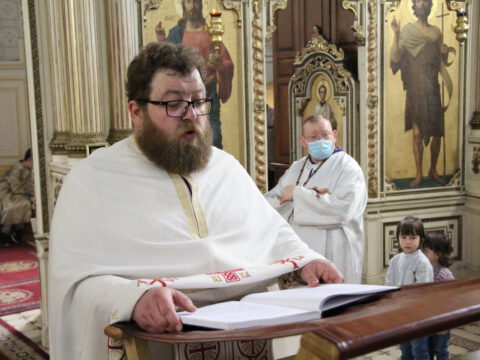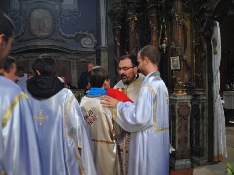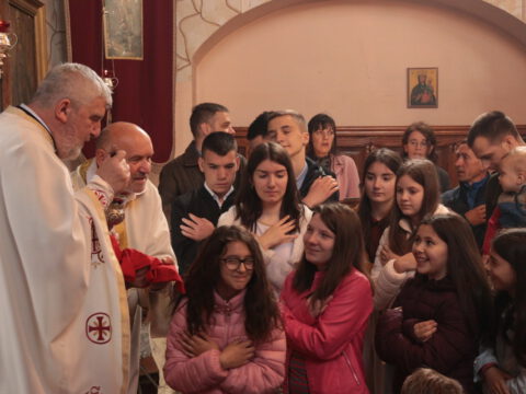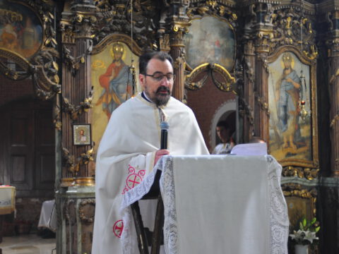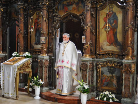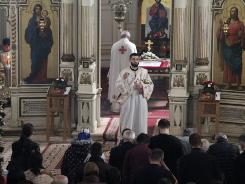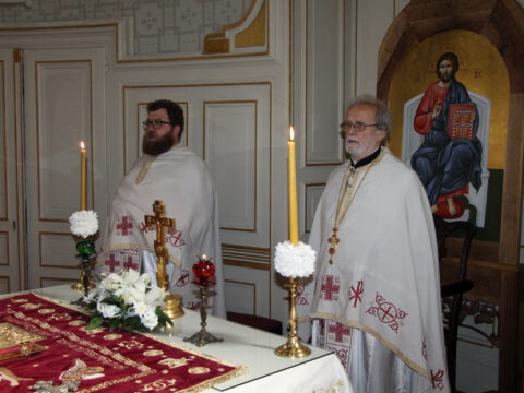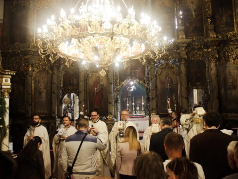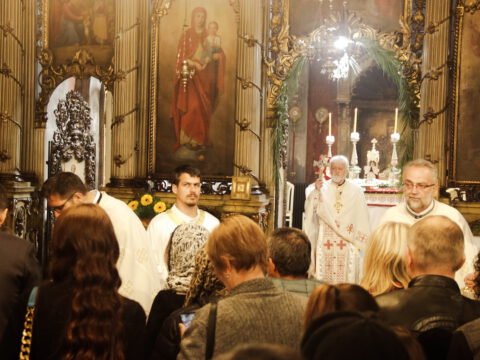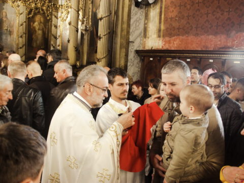 Светој Литургији у Световазнесенском храму у Суботици присуствовали су фра Зденко Грубер, гвардијан фрањевачког самостана у Суботици и његов сабрат Ђено.