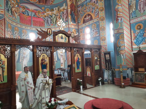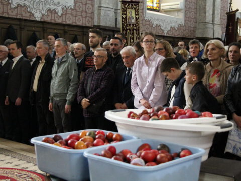 Црвенка – У Црвенки је свечано прослављено Васкрсење Господа Исуса Христа, у недељу, 11/24. априла 2022. године. У Светосавском храму у Црвенки свету Литургију служио је презвитер Милош Петровић. После свете Литургије, презвитер Милош Петровић је освештао васкршња јаја која су потом подељена верном народу.