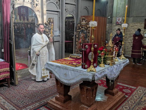 Евхаристијским сабрањем началствовао је протојереј Александар Брашанац, настојатељ Светониколајевског храма, уз саслужење презвитера Владимира Маркова. После прочитаног јеванђелског зачала прочитана је Васкршња посланица Архиепископа пећког, Митрополита београдско-карловачког и Патријарха српског господина Порфирија и свих архијереја Српске Православне Цркве, упућена свештенству, монаштву и свима синовима и кћерима наше свете Цркве.