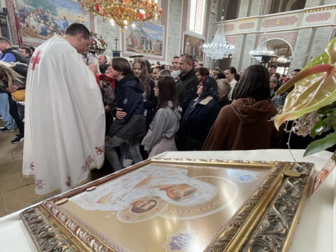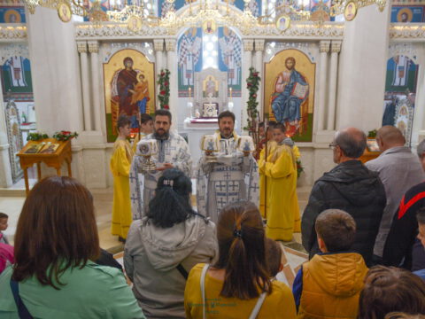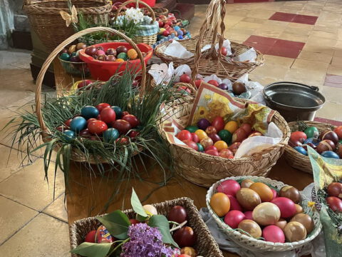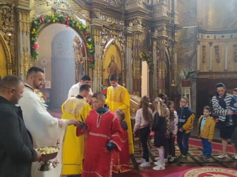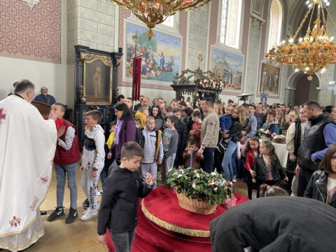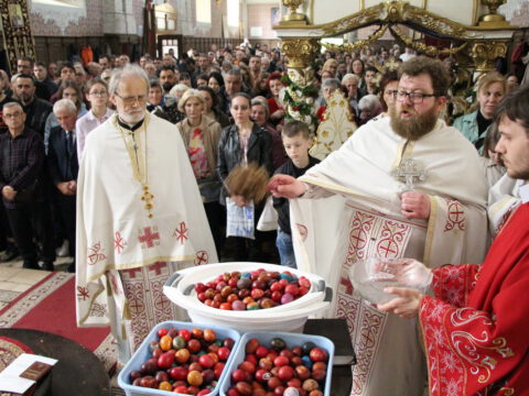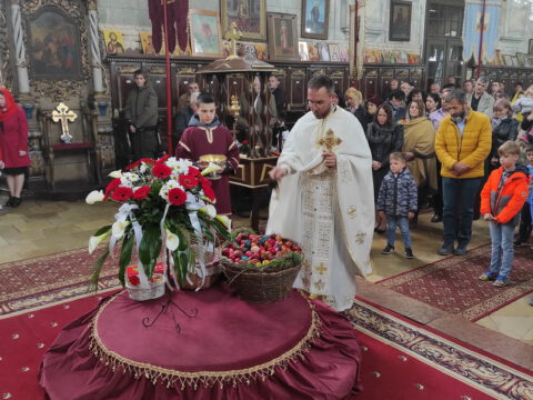 Хоргош – Празник над празницима, Васкрсење Христово, молитвено и радосно је прослављен у Хоргошу, у недељу, 11/24. априла 2022. године, у храму Преображења Господњег. Свету Литургију служио је презвитер Бошко Симић, парох хоргошки. Већина присутних верника и деце приступили су светом Причешћу.