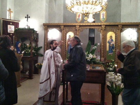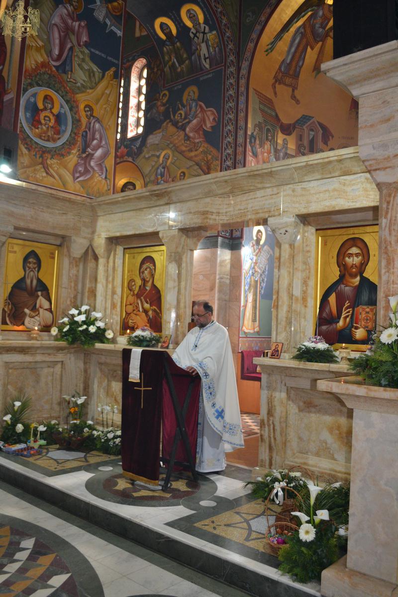 Литургијским сабрањем је началствовао презвитер Милорад Мишков, а саслуживао је презвитер Србољуб Срдић. После перикопе Јеванђеља по Јовану, презвитер Србољуб Срдић је прочитао Васкршњу посланицу Архиепископа пећког, Митрополита београдско-карловачког и Патријарха српског господина Порфирија и свих архијереја Српске Православне Цркве.