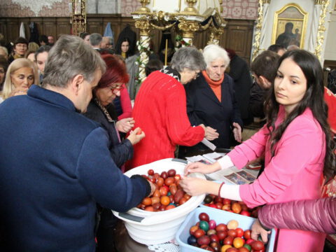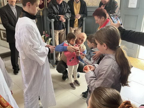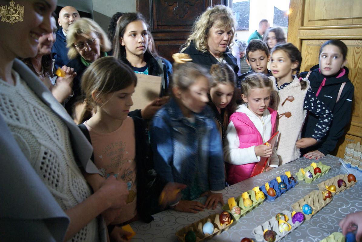 На крају Литургије, присутнима су подељена освештана васкршња јаја.