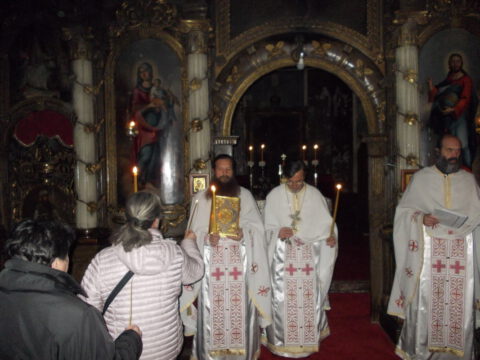 Ветерник – У ветерничком Светосимеоновском храму, на Свети и Велики петак, 9/22. априла 2022. године, служено је богослужење Царских часова. У оквиру Царских часова прочитани су посебни псалми, старозаветна пророштва, као и одељци из Апостола и Јеванђеља, који се односе на света и спасоносна страдања Господа Исуса Христа. У своје време, служено је вечерње богослужење Великог петка са изношењем плаштанице, док је каснијим вечерњим часовима служено Мало повечерје са каноном Распетом Христу, а потом и јутрење Велике суботе са статијама. На крају јутрења, после троструког опхода око храма са плаштаницом, прочитано је старозаветно чтеније, као и одељак из Апостола и одељак из Јеванђеља по Матеју. Наведена богослужења служио је пречасни презвитер Лазар Мајсторовић, уз саслужење храмовног братства и појање појаца ветерничког храма.