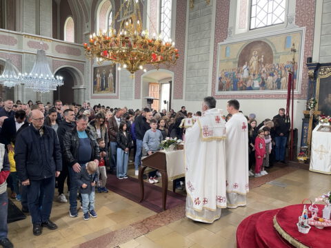 Суботица – У Световазнесенском храму у Суботици, Празник над празницима, Васкрсење Господа Исуса Христа, молитвено, радосно и свечано је прослављен у недељу, 11/24. априла 2022. године, уз присуство многобројног верног народа.