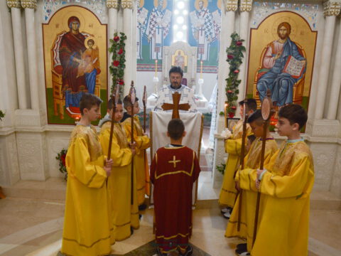 Нови Сад – На Празник Васкрсења Господа нашег Исуса Христа, у недељу, 11/24. априла 2022. године, Његово Преосвештенство Епископ бачки господин др Иринеј служио је пасхално јутрење и началствовао на светој архијерејској Литургији у Саборном храму у Новом Саду. Владици Иринеју су саслуживали Његово Преосвештенство Епископ мохачки господин Дамаскин и свештено братство Саборног храма.