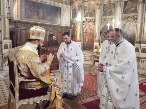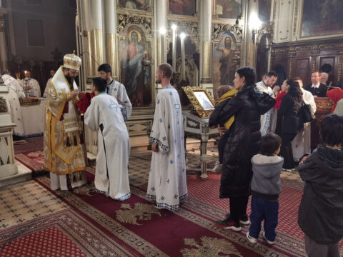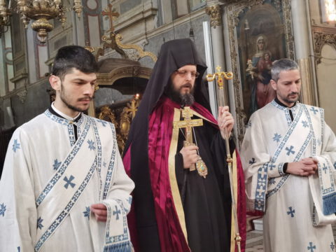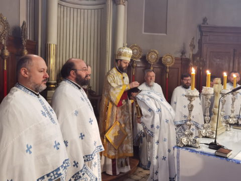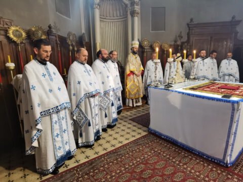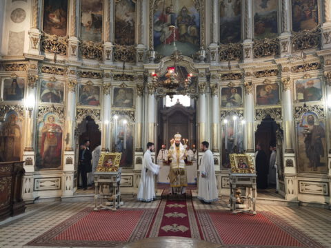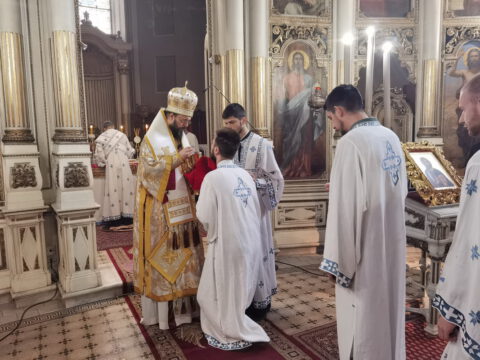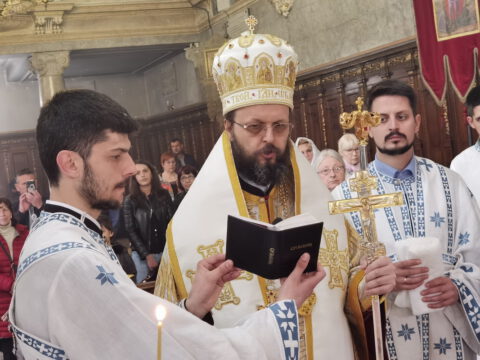 У уторак, 20. априла / 3. маја 2022. године, на празник Светог Николаја Жичког, у Саборном храму у Новом Саду, у наставку јутрења служена је света архијерејска Литургија на којој је началствовао Његово Преосвештенство Епископ мохачки господин Дамаскин, уз саслужење свештенства и ђаконства Епархије бачке.