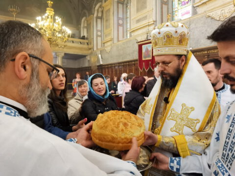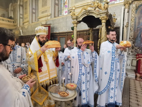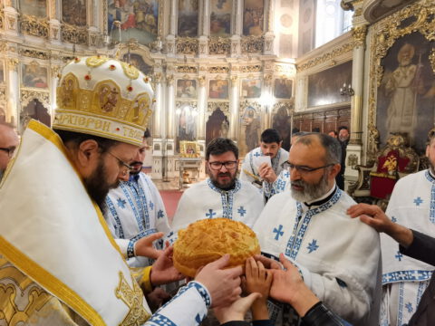 После свете Литургије, уприличена је трпеза љубави у свечаној дворани Црквене општине новосадске.