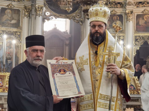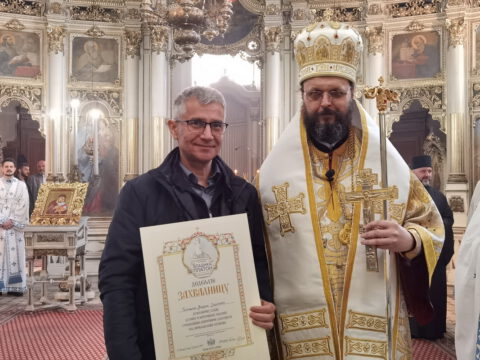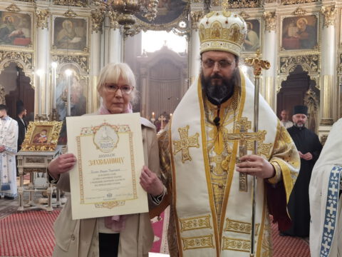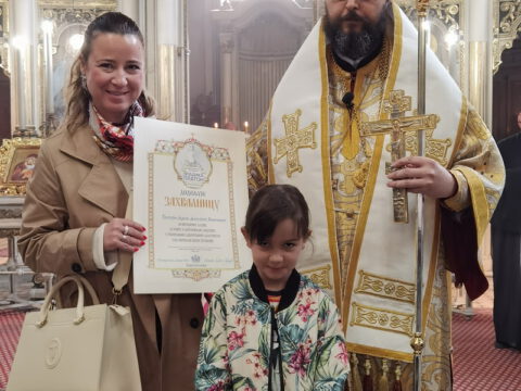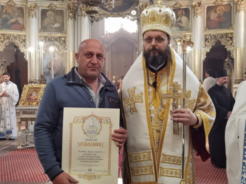 После чина благосиљања славских дарова, протојереј Миодраг Шипка, архијерејски намесник новосадски први, прочитао је одлуку Његовог Преосвештенства Епископа бачког господина др Иринеја, којом се архијерејске грамате признања додељују: Црквеној општини у Новом Саду, протојереју Владану Симићу, Николи Врућинићу из Крагујевца, Данијели Ковачевић, Дејану Слијепчевићу, Жељку Дробњаку и Зорану Радовићу из Новог Сада, за оданост светој православној вери и љубав према светој Православној Цркви, на делу показану кроз помоћ и допринос у духу задужбинарских и добротворних традиција светог Православља у српском народу.