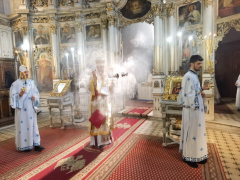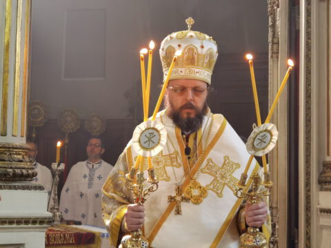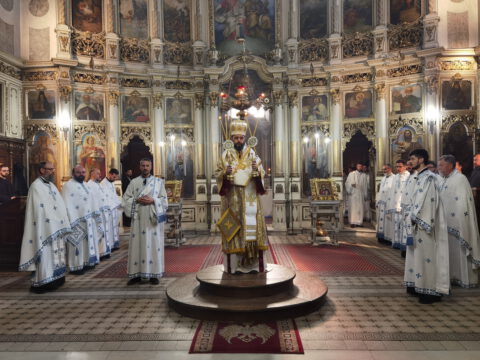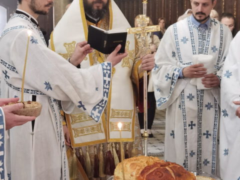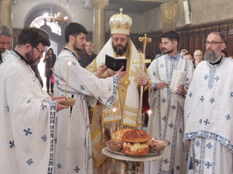 У уторак, 20. априла / 3. маја 2022. године, на празник Светог Николаја Жичког, у Саборном храму у Новом Саду, у наставку јутрења служена је света архијерејска Литургија на којој је началствовао Његово Преосвештенство Епископ мохачки господин Дамаскин, уз саслужење свештенства и ђаконства Епархије бачке.