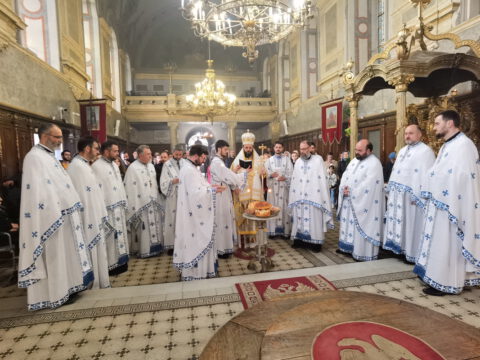 После свете Литургије, уприличена је трпеза љубави у свечаној дворани Црквене општине новосадске.