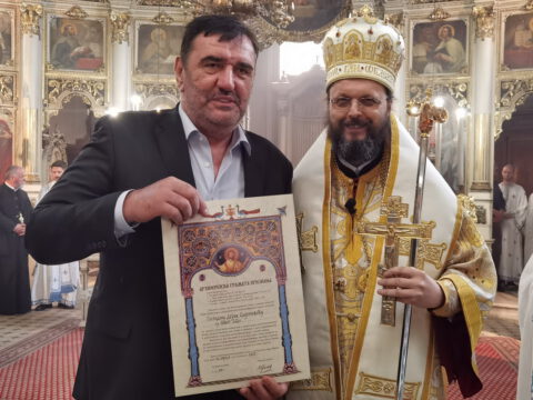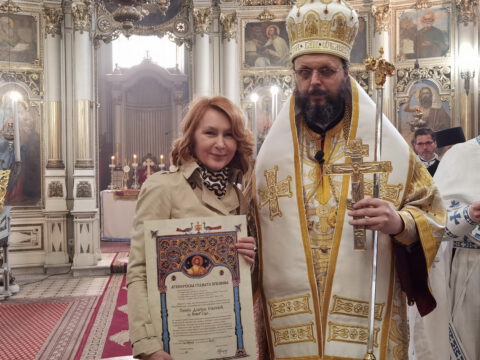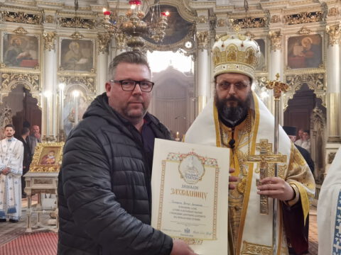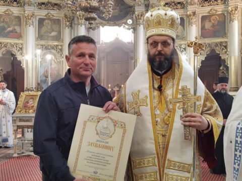 После чина благосиљања славских дарова, протојереј Миодраг Шипка, архијерејски намесник новосадски први, прочитао је одлуку Његовог Преосвештенства Епископа бачког господина др Иринеја, којом се архијерејске грамате признања додељују: Црквеној општини у Новом Саду, протојереју Владану Симићу, Николи Врућинићу из Крагујевца, Данијели Ковачевић, Дејану Слијепчевићу, Жељку Дробњаку и Зорану Радовићу из Новог Сада, за оданост светој православној вери и љубав према светој Православној Цркви, на делу показану кроз помоћ и допринос у духу задужбинарских и добротворних традиција светог Православља у српском народу.