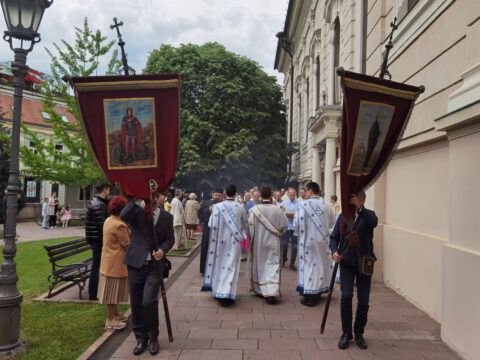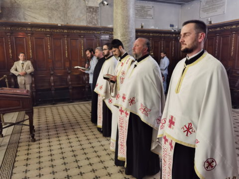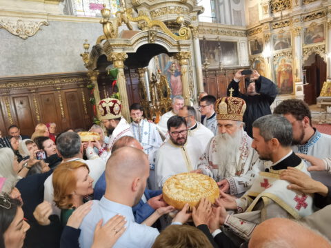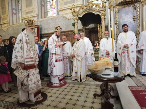 У петак, 23. априла / 6. маја 2022. године, житељи Новог Сада свечано су прославили престони празник Саборног храма Светог великомученика, победоносца и чудотворца Георгија. Прослављање празника отпочело је свечаним празничним бденијем, које је, у молитвеном присуству Његовог Преосвештенства Епископа бачког господина Иринеја, служио протојереј Бране Миловац, настојатељ Алмашког храма у Новом Саду, уз саслужење свештеног братства Саборног храма.