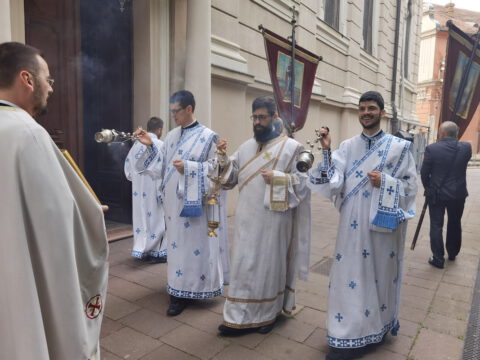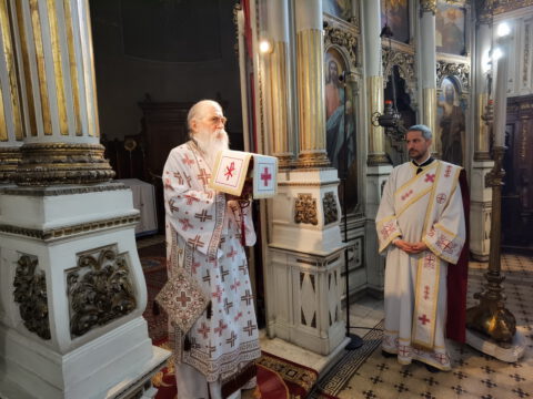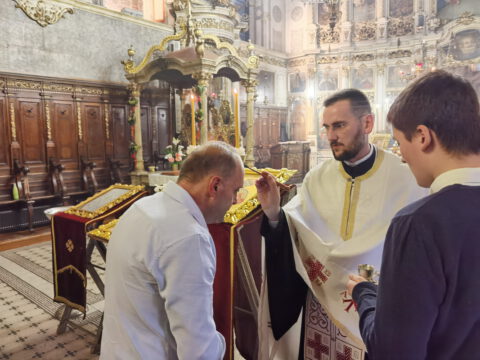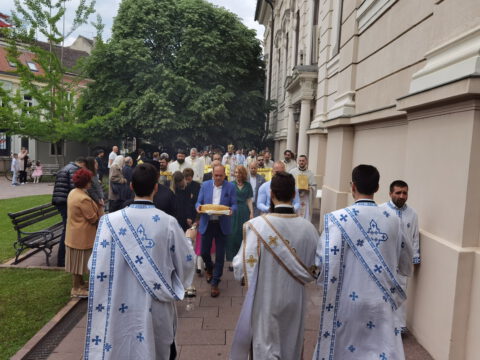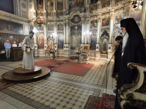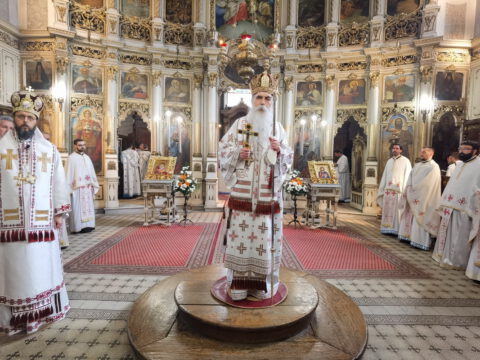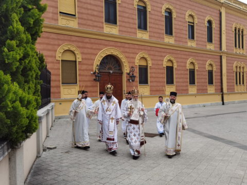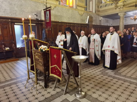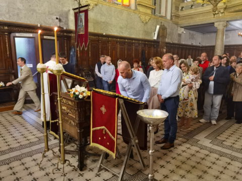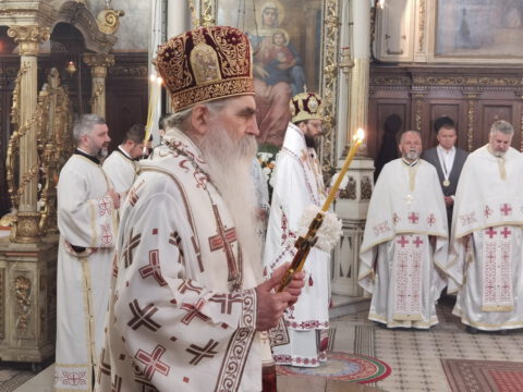 На дан празника, на светој архијерејској Литургији началствовао је Његово Преосвештенство Епископ бачки господин др Иринеј, уз саслужење Његовог Преосвештенства Епископа мохачког господина Дамаскина, као и новосадских свештеника и ђакона.