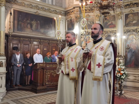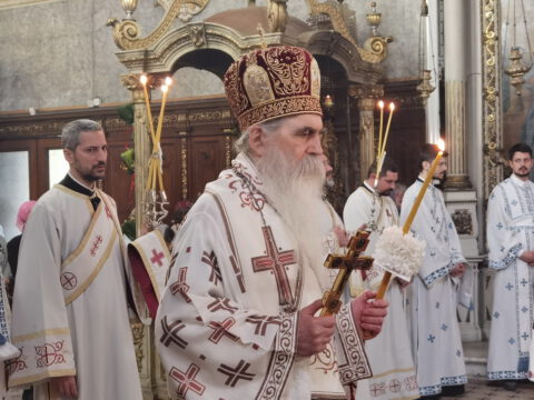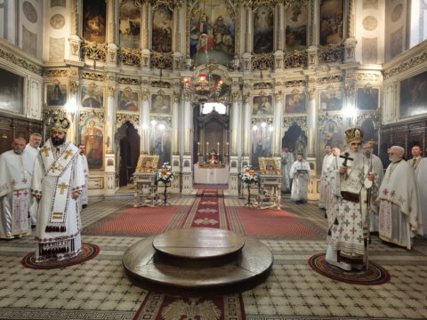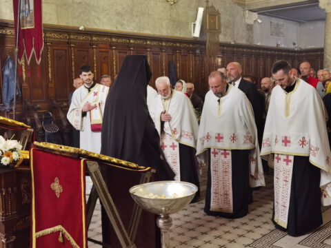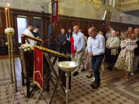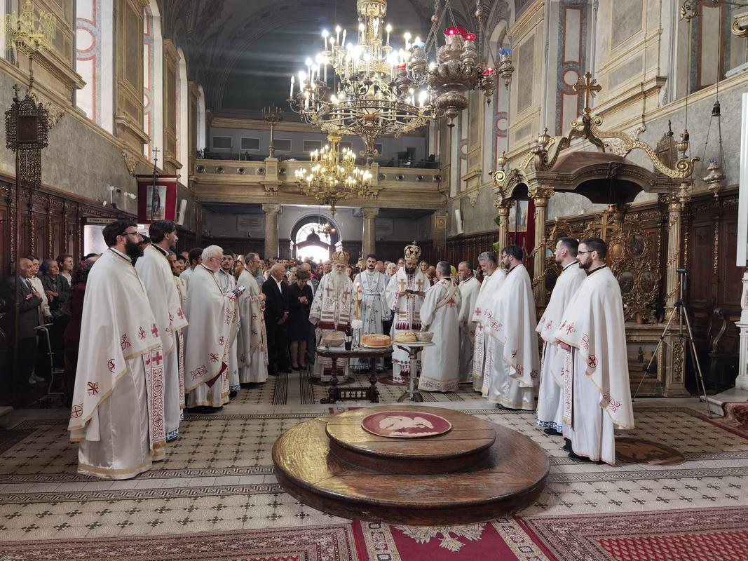 На дан празника, на светој архијерејској Литургији началствовао је Његово Преосвештенство Епископ бачки господин др Иринеј, уз саслужење Његовог Преосвештенства Епископа мохачког господина Дамаскина, као и новосадских свештеника и ђакона.