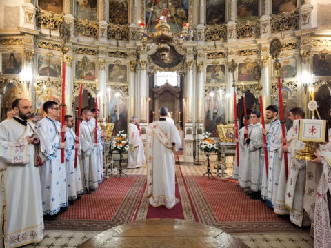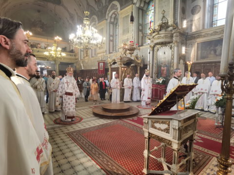 У петак, 23. априла / 6. маја 2022. године, житељи Новог Сада свечано су прославили престони празник Саборног храма Светог великомученика, победоносца и чудотворца Георгија. Прослављање празника отпочело је свечаним празничним бденијем, које је, у молитвеном присуству Његовог Преосвештенства Епископа бачког господина Иринеја, служио протојереј Бране Миловац, настојатељ Алмашког храма у Новом Саду, уз саслужење свештеног братства Саборног храма.