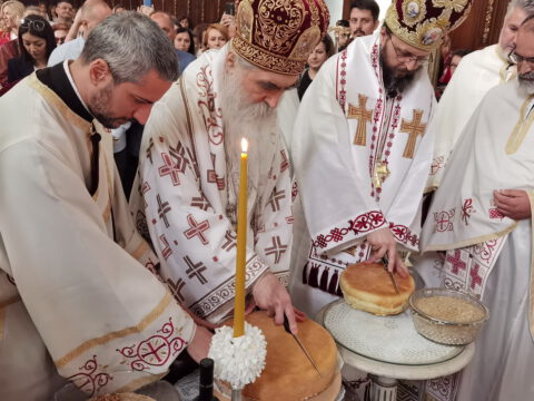 После опхода, владика Иринеј је благословио славске дарове, које су ове године са љубављу, Господу у славу, а у част светог великомученика Георгија, принели кумови храмовне славе, Војислав и Данијела Ковачевић. Светој Литургији је присуствовао господин Никола Перваз, председник Црквене општине у Новом Саду.