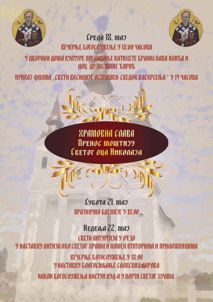Недеља, 22. мај 2022. године, празник Преноса моштију Светог оца Николаја – храмовна слава: