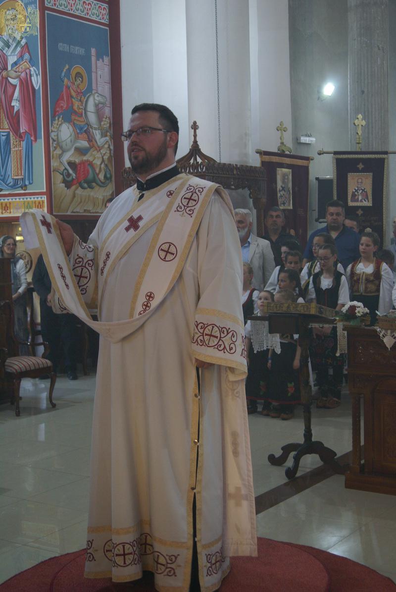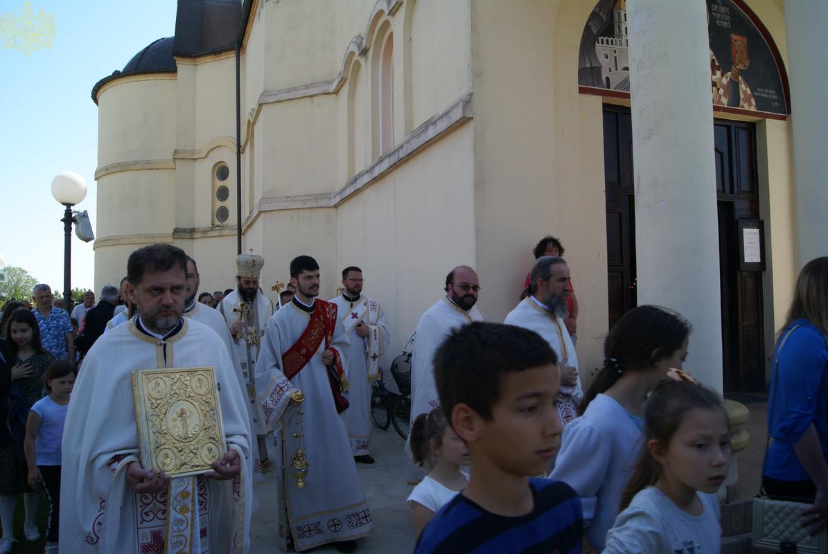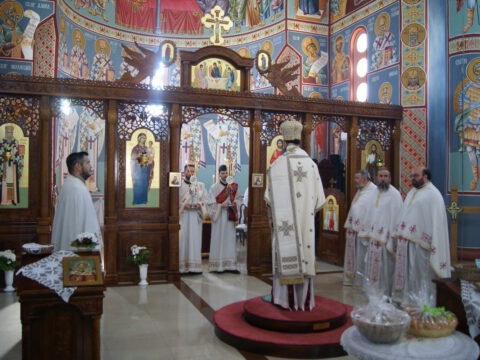 На дан храмовне славе, свету архијерејску Литургију је служио Његово Преосвештенство Епископ мохачки господин Дамаскин, уз саслужење свештенства и ђаконства Епархије бачке.