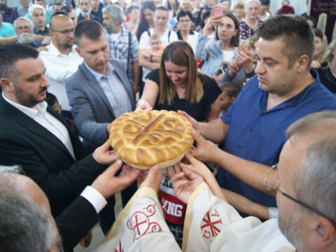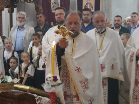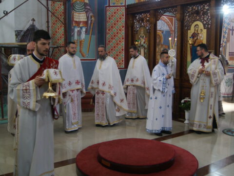 [carousel_slide id=’48000′]Вечерњe богослужењем je служио протојереј-ставрофор Стојан Билић, парох новосадски, уз саслужење свештенства Епархије бачке, после чега је извршен чин благосиљања славских дарова, које су принели браћа Сава и Илија Јакшић. Присутном верном народу беседом се обратио презвитер Живко Рајиновић, парох горњоковиљски, који је честитао славу и говорио о значају Васкрсења, као и о светом Василију и његовом сведочењу Васкрсења. Прота Дојчин захвалио је свима који су присуствовали прослави храмовне славе. Кумство за следећу годину прихватио је г. Младен Зец, председник Општине Темерин.