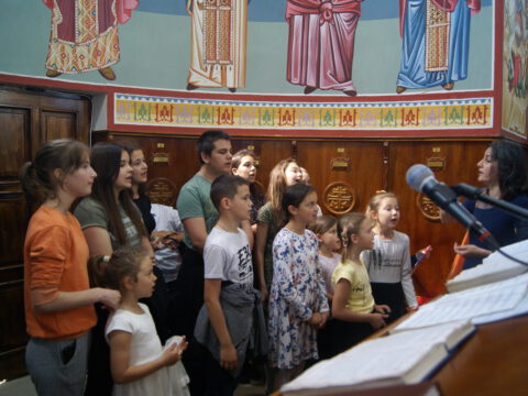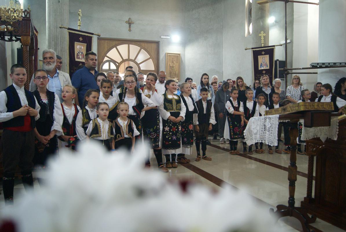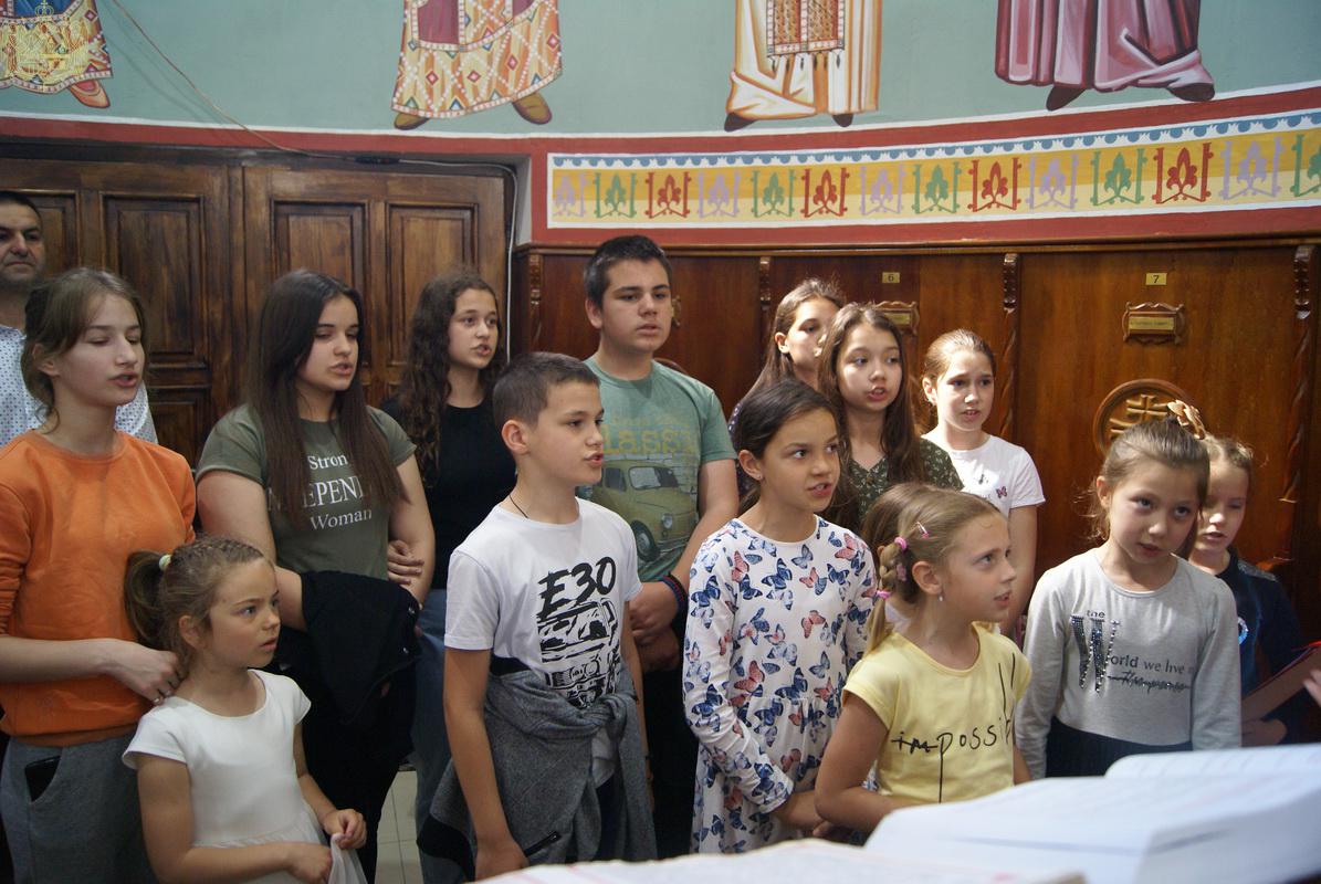Лепоти богослужења допринели су својим појањем некадашњи ученици Богословије Светих Кирила и Методија у Нишу, који су се у Богословији школовали од 2012. до 2017. године, као и дечји црквени хор „Свети Василије Острошкиˮ, под руковођењем госпође Невене Шкрбић.