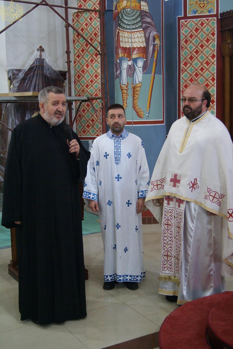 У беседи после прочитаног јеванђелског одељка, Преосвећени владика Дамаскин је, између осталог, рекао: „Ако је неко заиста живео достојно и уподобио се Христу, онда је то био свети Василије Острошки. Када прочитамо његово житије, видимо да је он у свом животу имао много мука и много невоља, како од свирепих Агарјана тако и од унијатске пропаганде у приморју, али исто тако и од свога рода. Али, он је све то подносио трпељиво, јер је речи молитве Господње – нека буде воља Твоја – заиста прихватио као истински путовођ у свом животу. Тако је он своју дечачку веру, коју је стекао у кући својих родитеља у Поповом пољу, пренео у манастир Тврдош и тамо духовно узрастао код свога стрица и других монаха и заиста својим животом постао стуб Православља, јер је пратио и следио Онога Који јесте истински Подвигоположник, а то је Христос Господ наш. Још за време свога живота он је постао оно што Господ каже: Ви сте светлост свету; постао је светлост свету, јер је Сâм Господ Светлост и који верује у Њега неће живети у тами. А исто тако постао је и со овоме свету, со која није обљутавила него је остала да сведочи истинску реч Божју, односно истинско Јеванђеље Божје.ˮ На крају беседе, Епископ мохачки Дамаскин је свештенству и сабраном верном народу честитао храмовну славу, преносећи благослов Његовог Преосвештенства Епископа бачког господина др Иринеја.