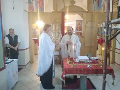 Вечерњe богослужење служио је презвитер Љубиша Човић, војни свештеник, уз саслужење протојереја Гордана Увалића, пароха александровачког. После молитвеног сабрања, у порти храма Светог Василија Острошког у Ђурђину за све присутне уприличена је трпеза љубави.