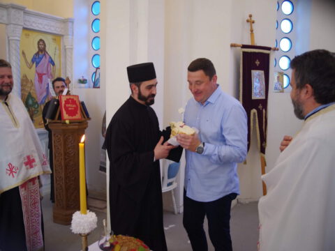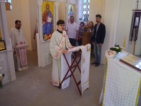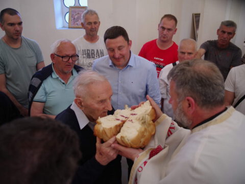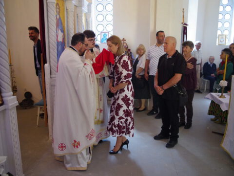 Вечерње богослужење је служио протопрезвитер Предраг Милутин, настојатељ Светојованoвског храма у Бачкој Паланци, уз саслужење свештенства архијерејског намесништва бачкопаланачког. Прота Предраг је благословио славске дарове, које су ове године у част светог Василија Острошког принели чланови породице Јована Јаничића, кумови храмовне славе. Кумство за наредну годину прихватио је Петар Јелић са својом породицом. Презвитер Миладин Божиловић, парох гајдобрански, по завршетку богослужења је захвалио овогодишњим кумовима на несебичној љубави према Цркви и новим кумовима на прихватању кумства за наредну годину.