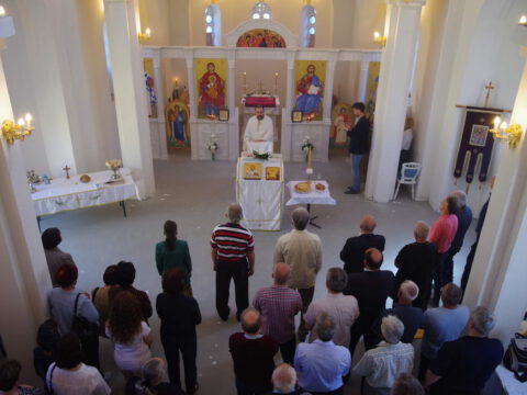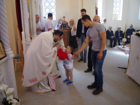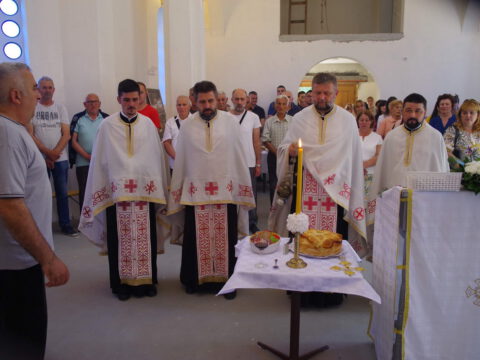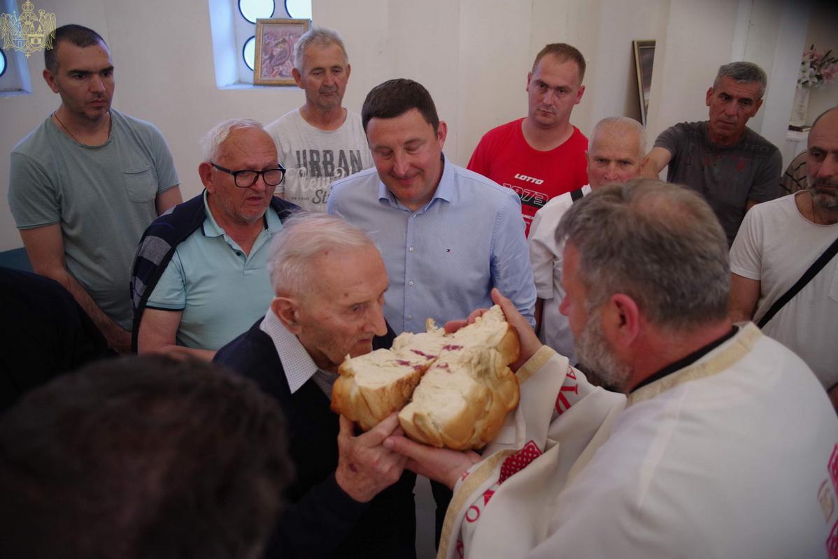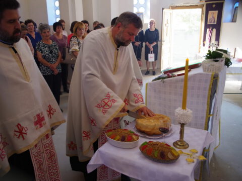 Вечерње богослужење је служио протопрезвитер Предраг Милутин, настојатељ Светојованoвског храма у Бачкој Паланци, уз саслужење свештенства архијерејског намесништва бачкопаланачког. Прота Предраг је благословио славске дарове, које су ове године у част светог Василија Острошког принели чланови породице Јована Јаничића, кумови храмовне славе. Кумство за наредну годину прихватио је Петар Јелић са својом породицом. Презвитер Миладин Божиловић, парох гајдобрански, по завршетку богослужења је захвалио овогодишњим кумовима на несебичној љубави према Цркви и новим кумовима на прихватању кумства за наредну годину.