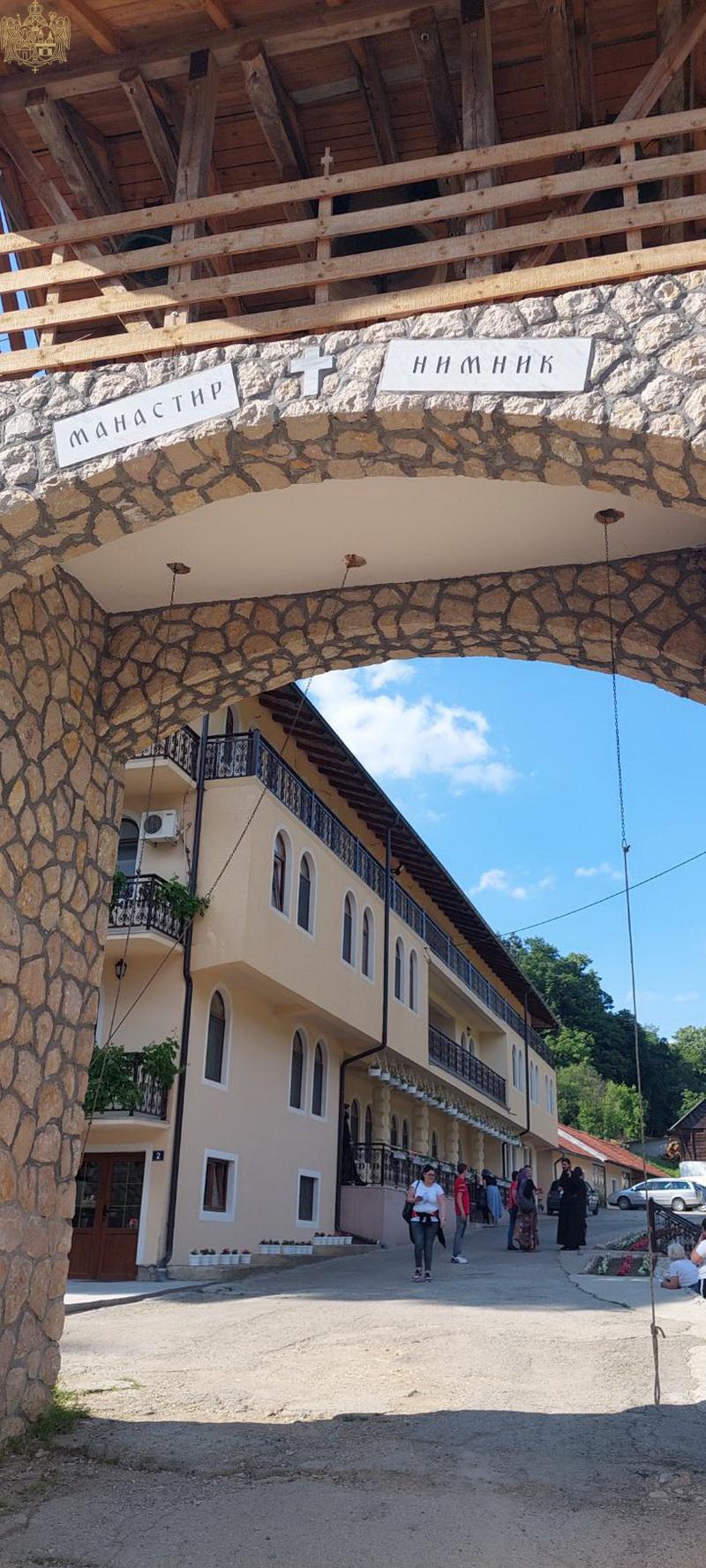 Прво одредиште поклоникâ био је манастир Тумане, где су се после завршене свете Литургије поклонили моштима преподобних и богоносних отаца Зосима и Јакова и присуствовали молитви за здравље. После молитве већина верникâ је обишла и пећину у којој се подвизавао свети Зосим. Следеће поклоничко одредиште је био манастир Нимник, где их је дочекао сабрат поменутог манастира, јеромонах Порфирије, који је потом прочитао и молитве за здравље.