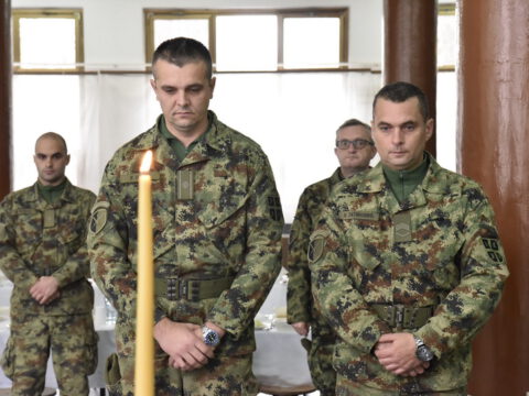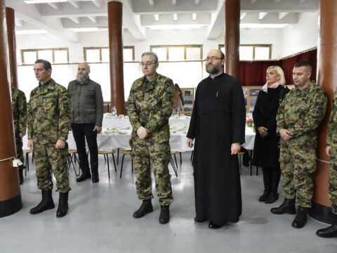 Сомбор – На празник Светог великомученика Димитрија – Митровдан, у уторак, 26. октобра / 8. новембра 2022. године, припадници Првог центра за обуку у касарни „Аеродромˮ у Сомбору, прославили су спомен свог небеског заштитника у празничном и домаћинском расположењу.