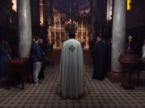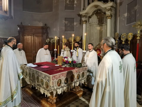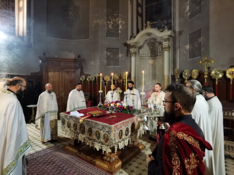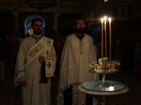 У уторак, 13. јуна 2023. године, у навечерје празника Преподобног Јустина Ћелијског, у Саборном храму у Новом Саду служено је свеноћно бденије са светом Литургијом. Бденију је молитвено присуствовао Епископ бачки г. Иринеј. На светој Литургији је началствовао презвитер Вељко Васиљев, уз саслужење свештенства Епархије бачке. Благољепију богослужења допринели су чланови Хора Школе појања „Свети Јован Дамаскинˮ при Црквеној општини новосадској и Хора Православног богословског факултета у Београду, које су предводили ђакон др Владимир Антић, доцент Православног богословског факултета, и г. Јован Ракочевић, професор Богословије Светог Саве у Београду.