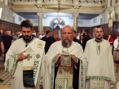 Са благословом Епископа бачког г. Иринеја, присутни верни народ имао је прилику да се, током свеноћног бденија, поклони дêлу светих моштију преподобног оца Јустина Ћелијског. По отпусту свете Литургије, протојереј Велимир Врућинић, настојатељ Саборног храма, заблагодарио је свештенству, појцима и присутном верном народу на молитвеном учешћу на богослужењима поводом празника Преподобног Јустина Ћелијског.