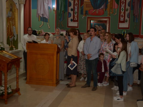 После заамвоне молитве извршен је опход око светог храма, са поменом оснивачима, ктиторима и приложницима светог храма. На светој Литургији је појао Црквени хор „Свети Јован Крститељˮ из Бачке Паланке, којим диригује професор Снежана Жујић.
