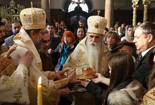 После заамвоне молитве извршен је чин благосиљања славских дарова, принетих у славу Божју, а у част Светог Саве. По отпусту свете Литургије, Високопреосвећени митрополит Иринеј је честитао празник сабраном верном народу, захвалио епископу Тихону на саслуживању, те је, између осталог, рекао: „Свима честитам данашњи велики празник, празник највећег, најомиљенијег светог из нашега рода, светитеља Саве, просветитеља српскога, који је и празник све наше деце и омладине, заштитник свих оних који и уче и уче се, тојест и оних који поучавају млађе, и младих, и деце који бивају поучавани. И то није само стицање спољашњих знања, како се данас мисли најчешће, него је то пре свега формирање образа Божјег, лика Божјега у душама деце и омладине. То није само школска слава, слава оних који уче и који се уче. Свети Сава је и свеопшта слава читавог нашег народа.ˮ