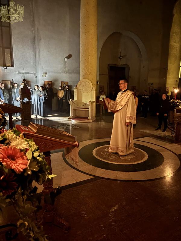 У петак, 26. априла / 9. маја 2025. године, у навечерје молитвеног спомена на Спаљивање моштију Светог Саве, у храму Преноса моштију Светог Саве у Новом Саду, служено је свеноћно бденије са светом Литургијом. За певницом су, под руководством Филипа Поповића, појали полазници Школе црквеног појања „Свети Јован Дамаскинˮ при Црквеној општини новосадској, који су прелепим молитвеним појањем учинили да сабрани верни народ осети пуноту, благољепије и топлину православног богослужења и молитвени дух Свете Горе. Светој Тајни Тела и Крви Христове приступио је сав сабрани верни народ. По завршетку богослужења, у име свештеног братства Светосавског храма, појцима и сабраном верном народу срдачно је заблагодарио протојереј Бранислав Мркић, настојатељ Светосавског храма. Служењем свеноћног бденија и свете Литургије отпочели су „Светосавски даниˮ у храму Преноса моштију Светог Саве у Новом Саду.