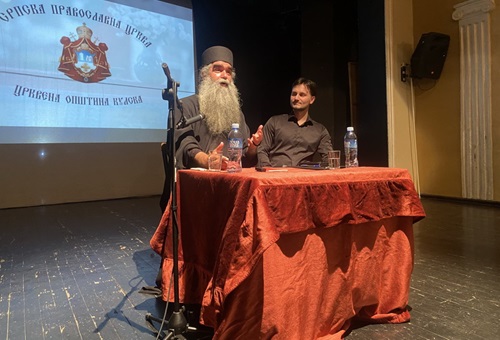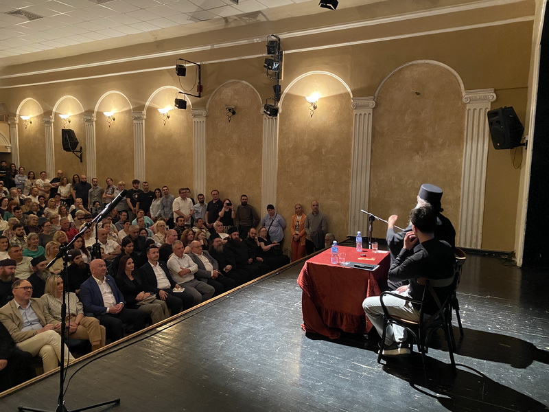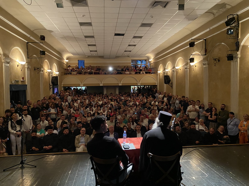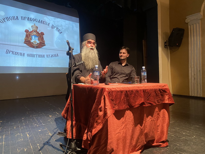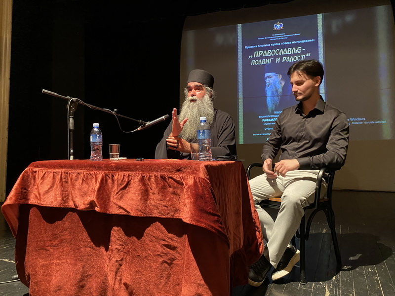 Са благословом Његовог Високопреосвештенства Митрополита бачког господина др Иринеја, у суботу, 30. маја 2025. године, у препуној дворани Културног центра у Кули, архимандрит Рафаило (Бољевић), игуман манастира Подмаине, одржао је предавање на тему „Православље – подвиг и радостˮ.