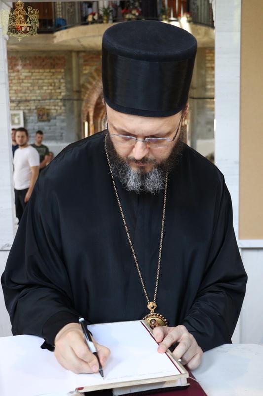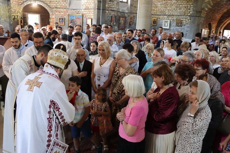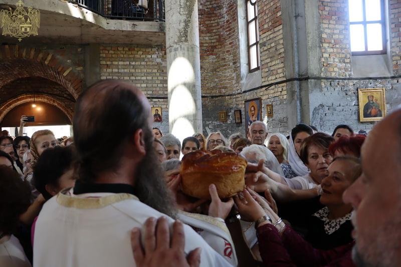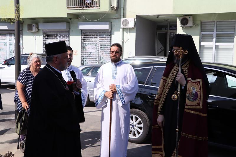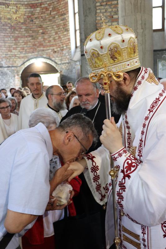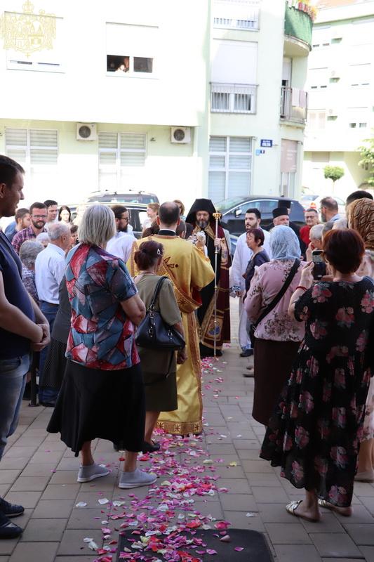 После свете Литургије, Преосвећени владика Дамаскин је сабранима честитао храмовну славу, пренео благослов и молитвене честитке Његовог Високопреосвештенства Митрополита бачког господина др Иринеја. Владика је похвалио чланове хора храма који су појали на светој Литургији. Протојереј Марко Ђурић, парох храма на Грбавици, заблагодарио је, у име братства храма, Епископу мохачком Дамаскину на служењу свете Литургије, свештеницима и ђаконима на саслуживању, а верном народу на молитвеном учешћу у прослави славе храма Светих цара Константина и царице Јелене.